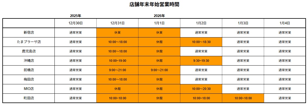 【2025年末・2026年始営業時間のご案内】 投稿日 2025年12月11日 著者 寛介泉 カテゴリー お知らせ カテゴリー ニュース 2025年年末と2026年年始のCARTOLERIA新宿店・たまプラーザ店・鹿児島店・沖縄店、前橋店・梅田店・MIO店・町田店の営業時間をご案内いたします。